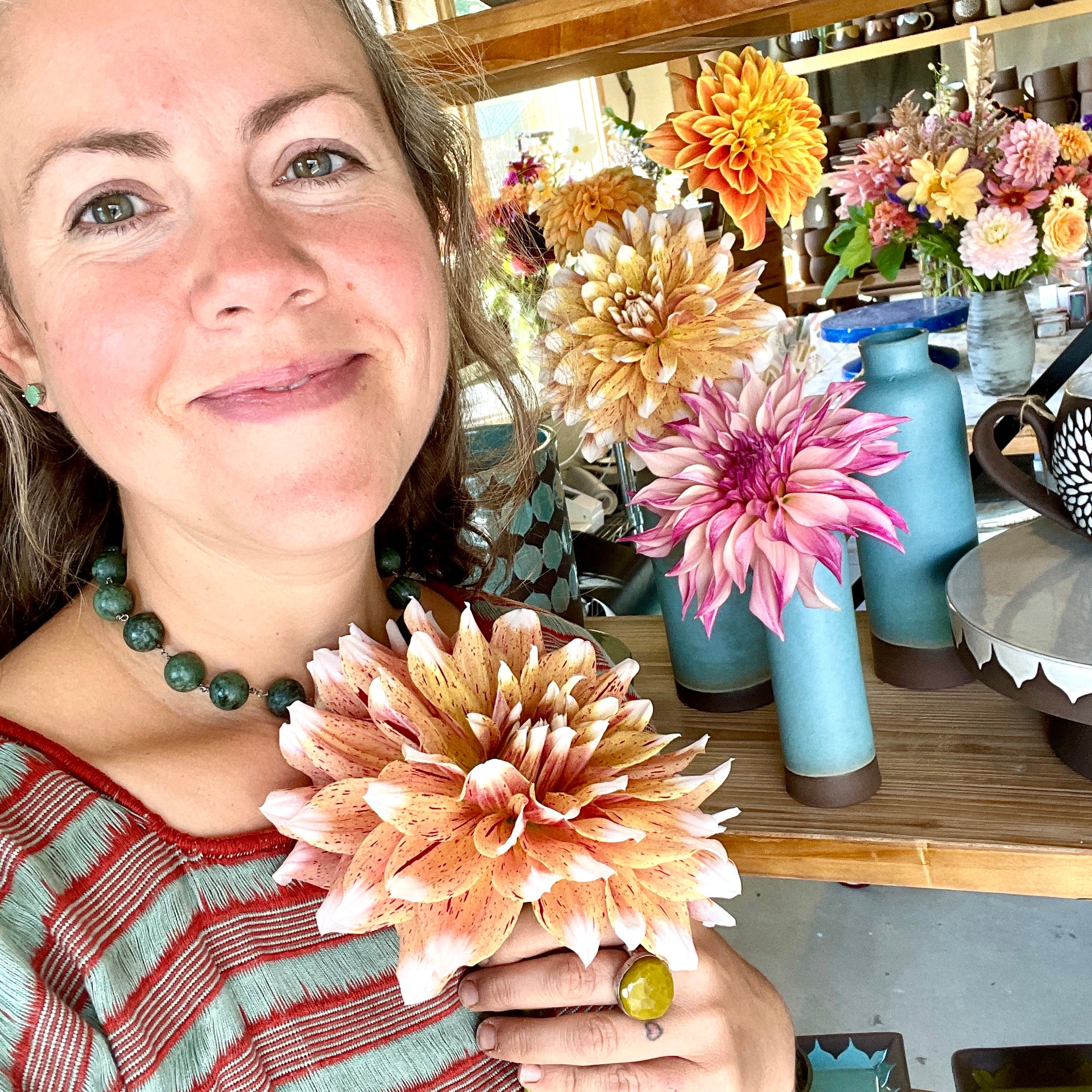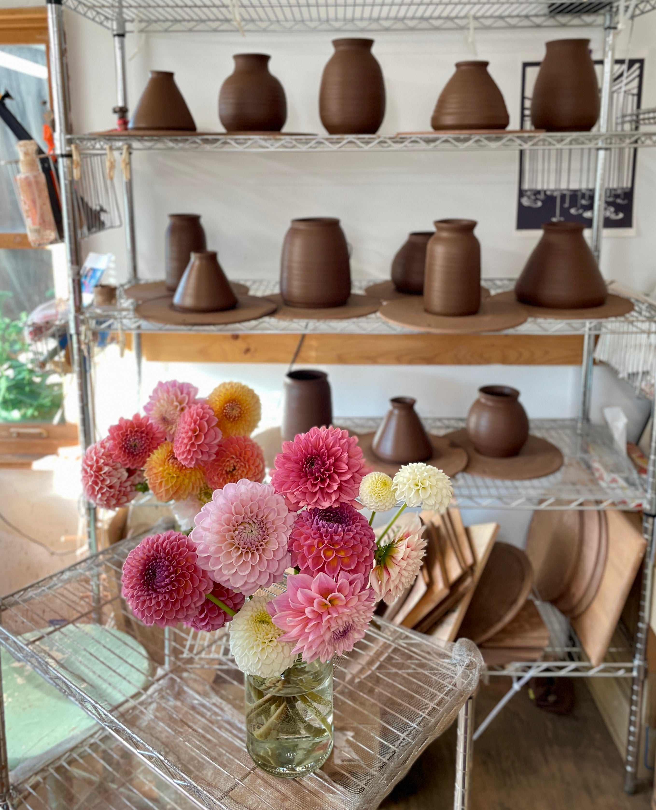 She started growing her own flowers because she needed fresh flowers to display with her handmade vases.