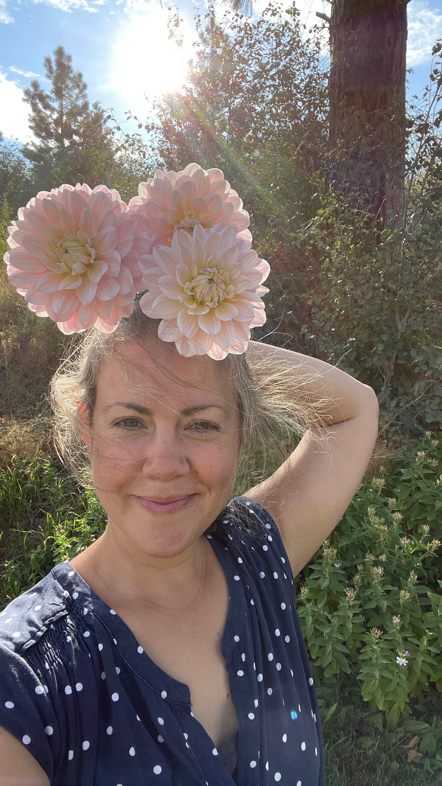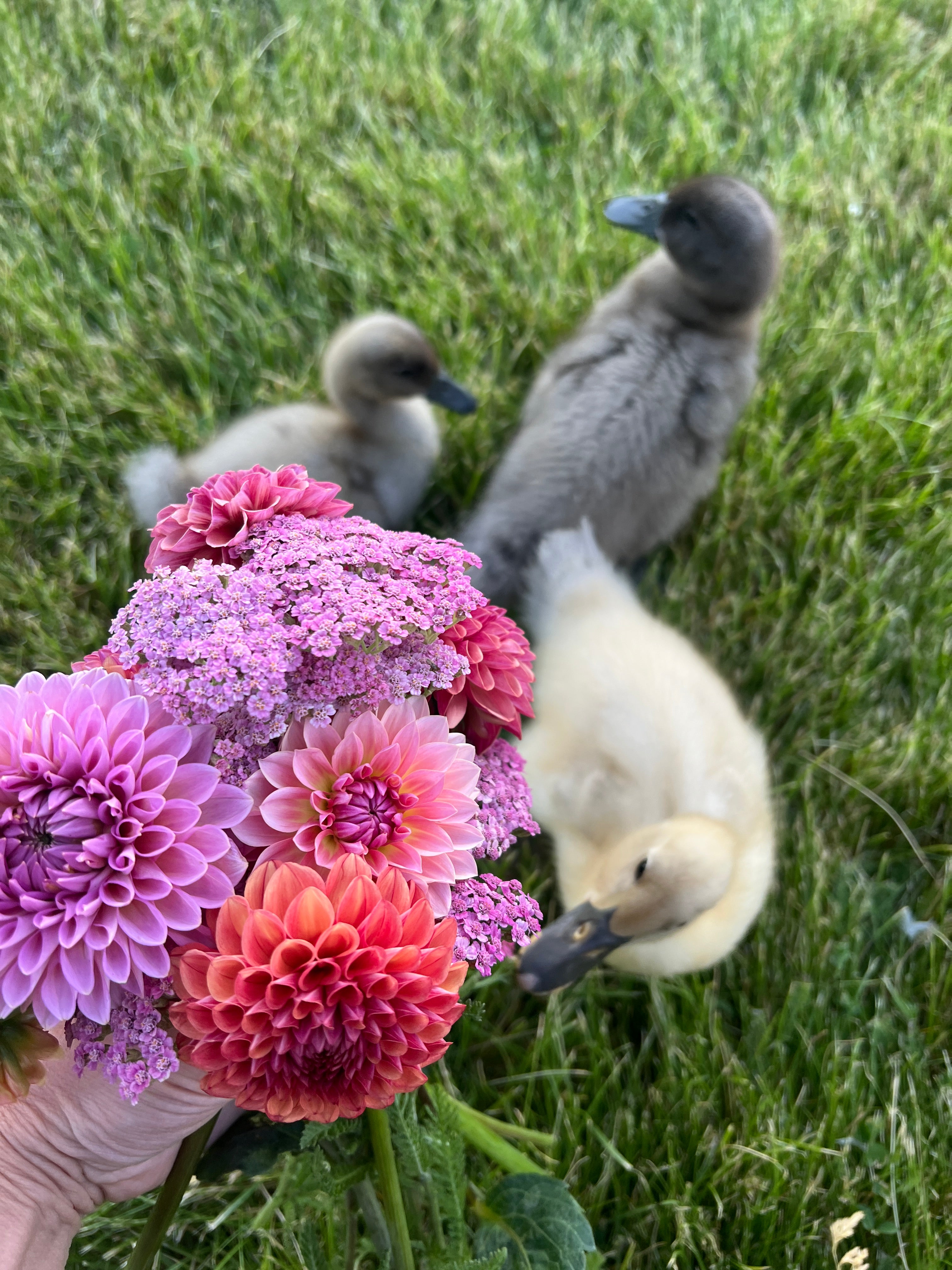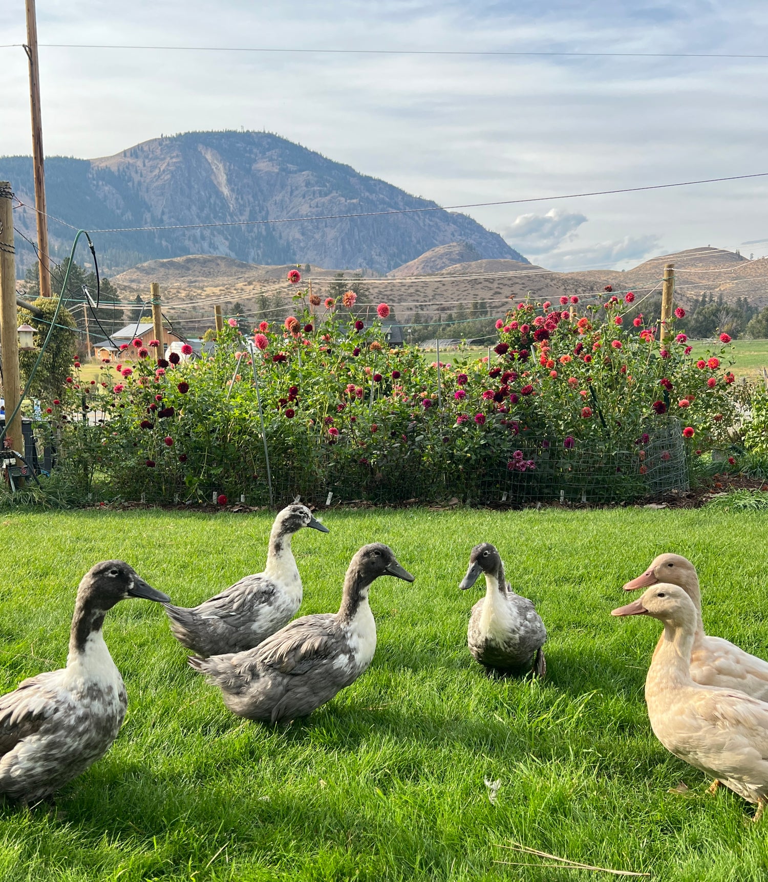 It can be a harsh environment for dahlias, but Mandy is passionate about growing them, and we use plenty of organic nutrients, compost from our duck coop, irrigation and sometimes shade cloth to help ensure our flowers have what it takes to thrive!