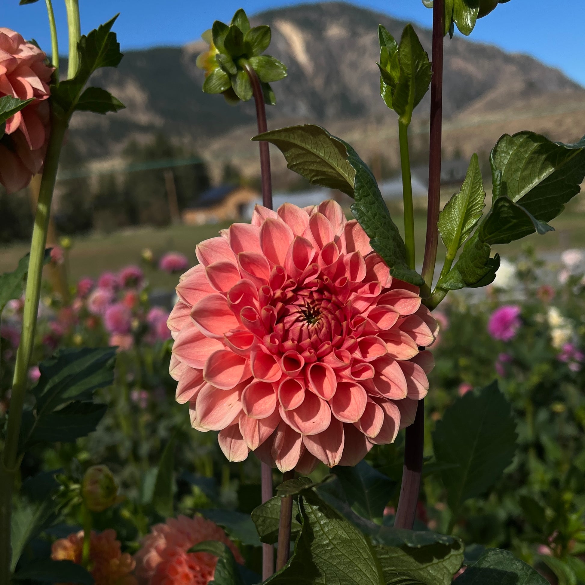 One of my favorite dahlias with rounded petals and such a unique tone of peach! Strong stems and strong bloomer. Hybridized by Ernest Cawkwell of the UK, released in 2012.