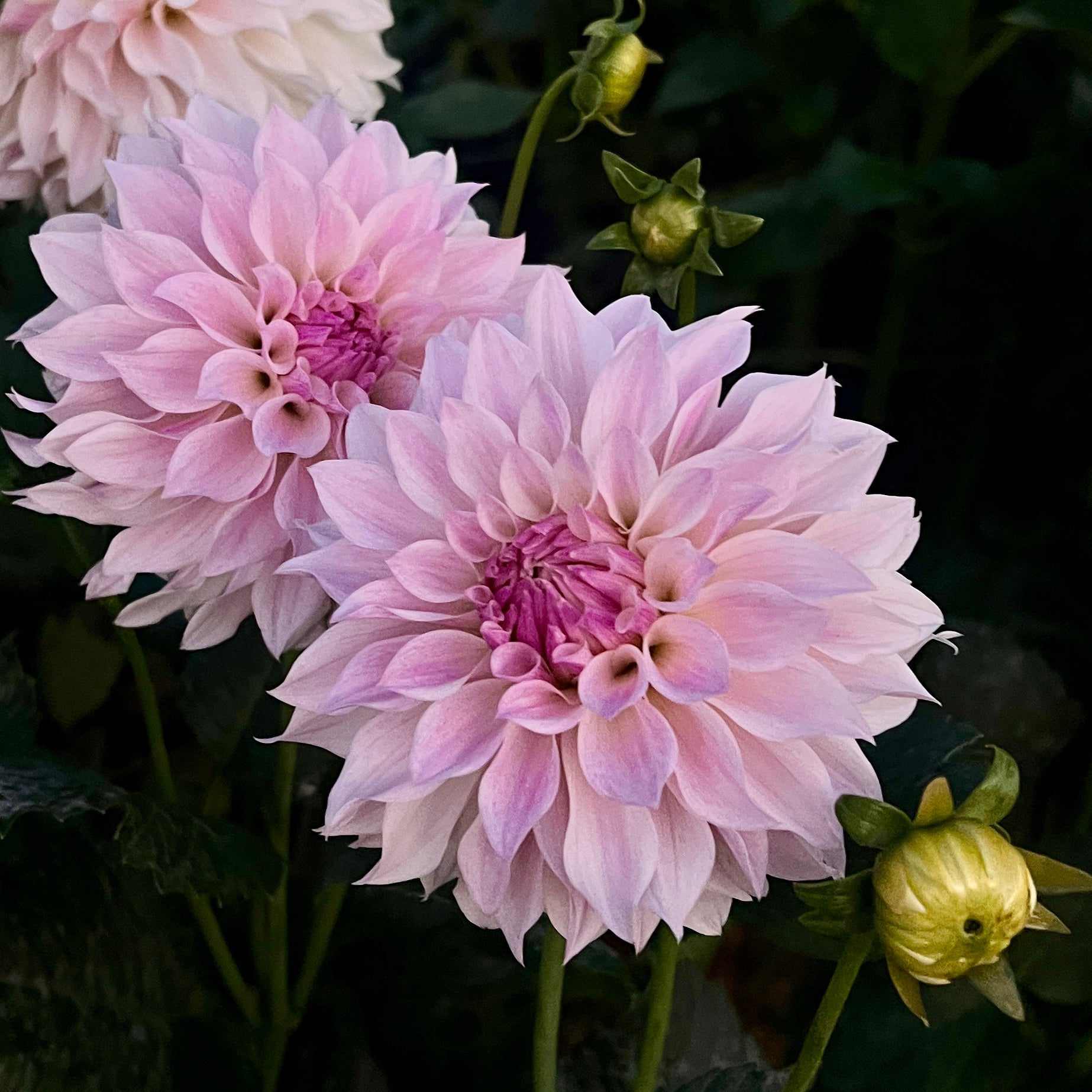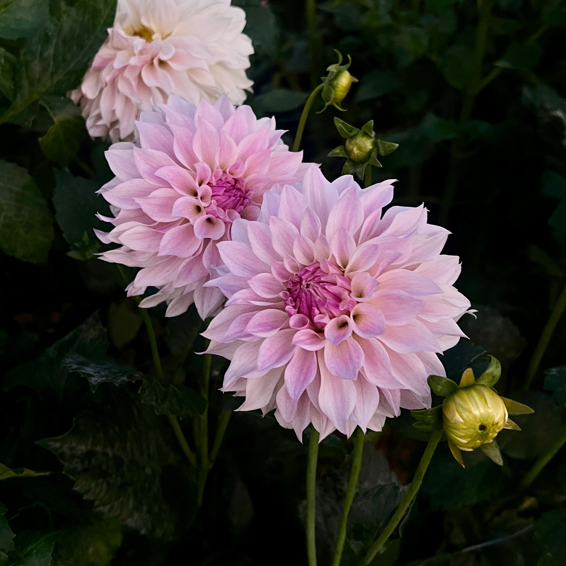 One of my absolute favorite dahlias - the colors change in subtle ways from pink to white to cream, throughout the season, always buttery soft blends of colors in my garden (high heat and dry where I live).